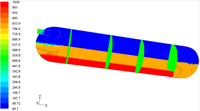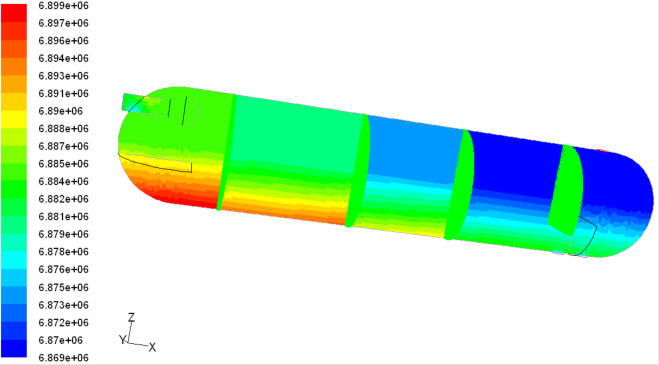 Contours of Pressure (Pa) in the Middle of a Large-Scale